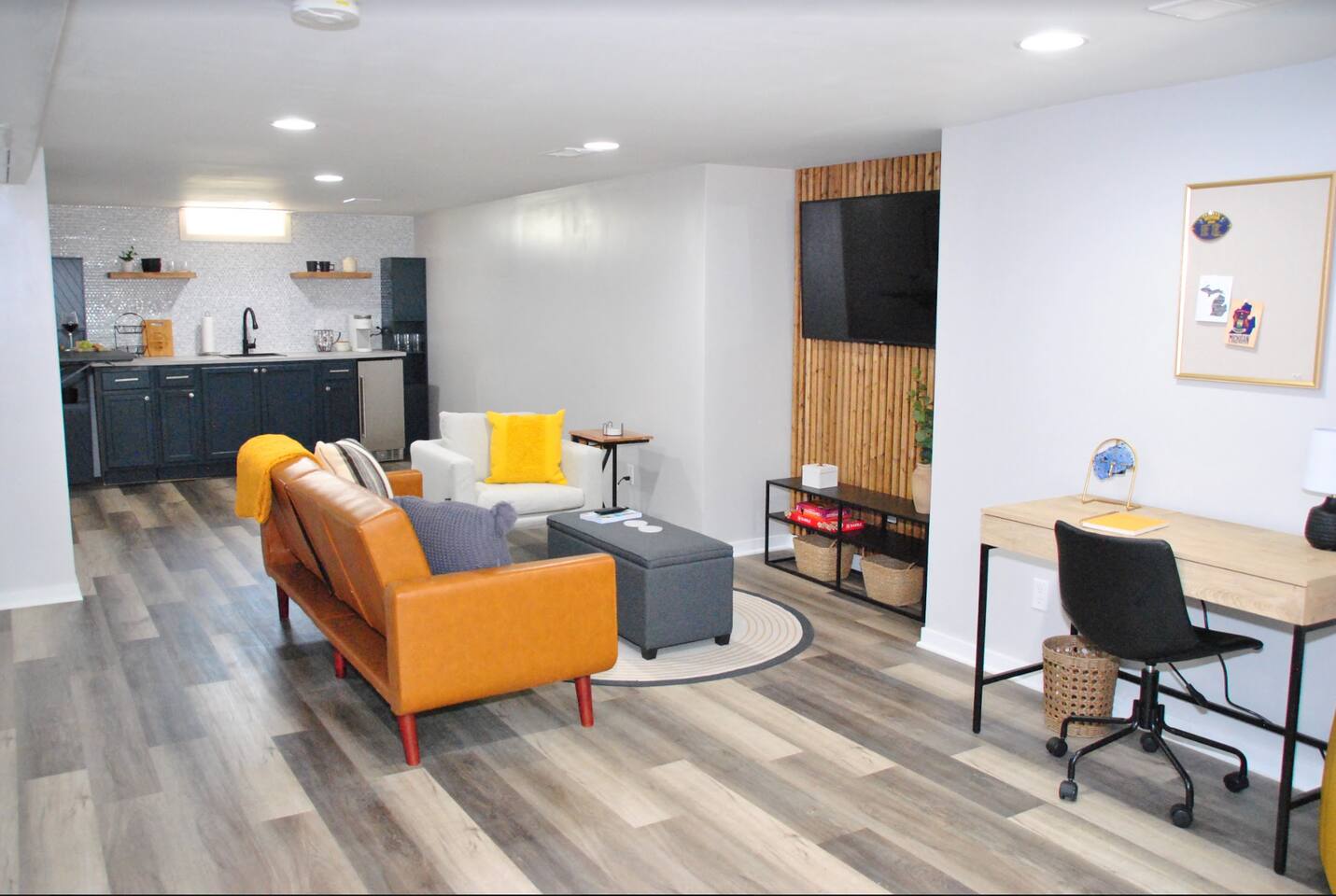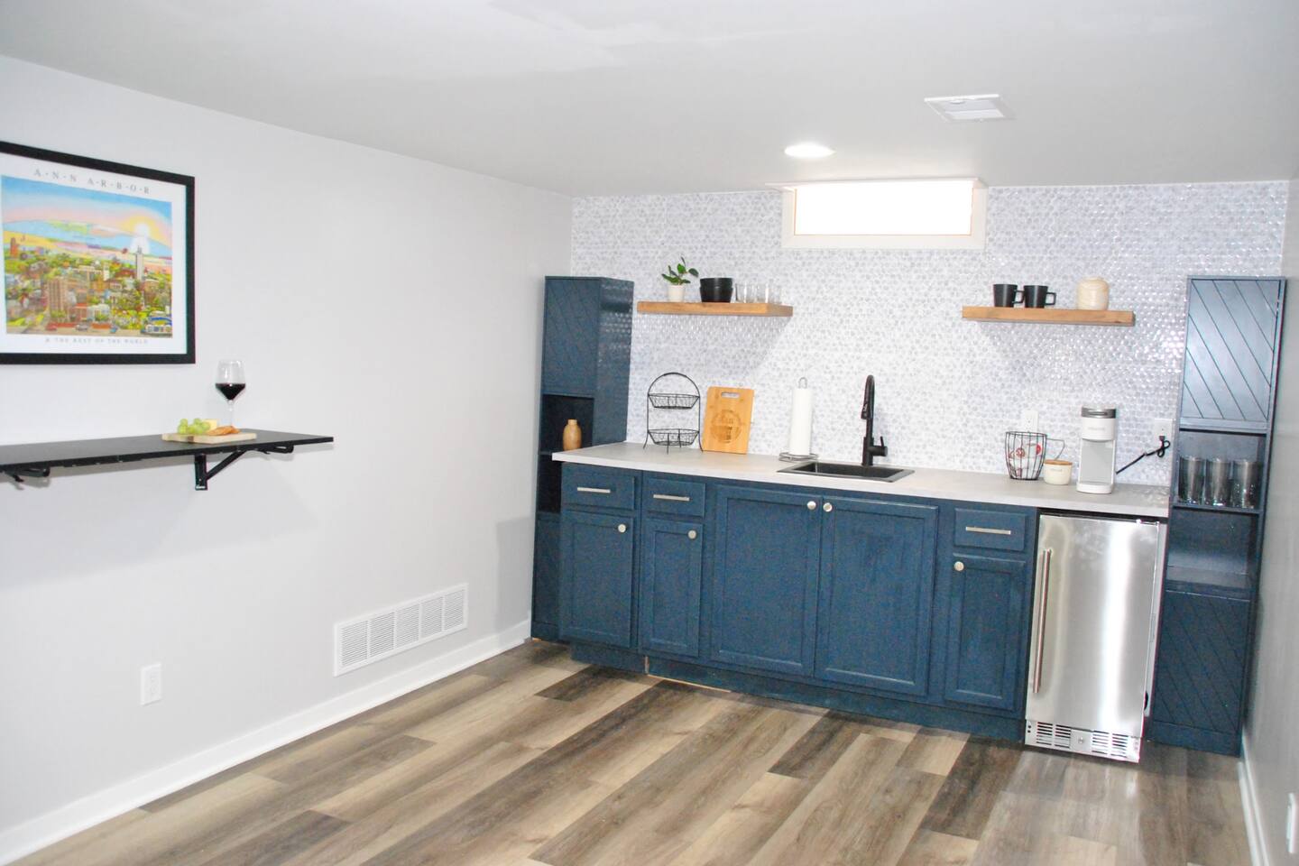 Walking distance (0.8mi) to The Big House. Short drive to campus. New furniture and design Nov 2025. Located on a quiet street, close to the action. New modern decor, 3 queen beds, 2 twin trundle beds, and a fold out full futon, high-speed WiFi, a full kitchen and patio space for entertaining upstairs and a full kitchenette and brick patio space designed for tailgating off the basement walkout, as well as 3 children's playgrounds within 0.2mi (Pack n play included if needed)
